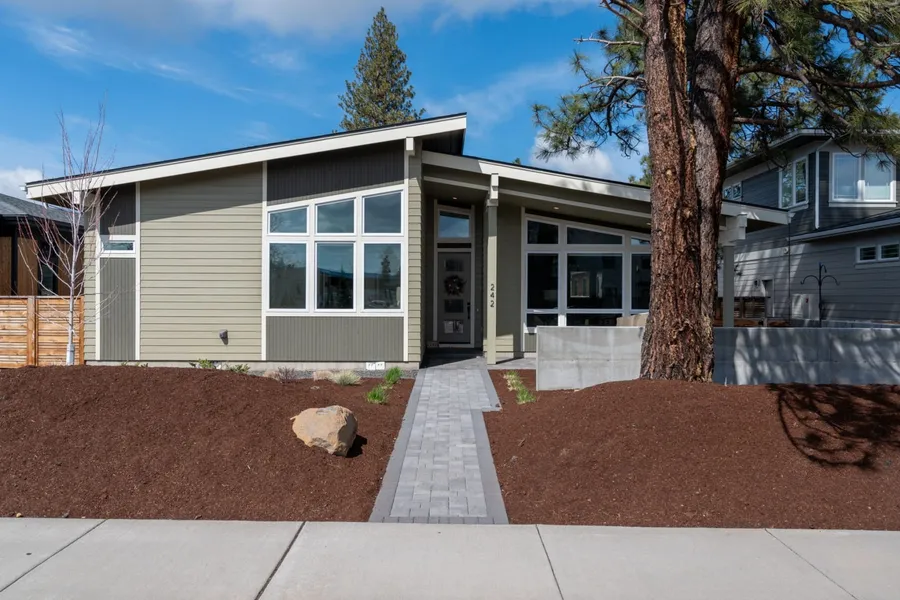 This stunning mid-century modern home offers 1,972 SF of thoughtfully designed single-level living in the heart of Sisters. A light-filled great room unites the living, dining, & kitchen areas beneath soaring vaulted ceilings, creating an inviting space to gather. The kitchen features custom cabinetry, high-end appliances, and a striking full-height tile backsplash. The primary suite is a luxurious retreat w/ a spacious walk-in closet, custom built-ins, & an elegant ensuite with a walk-in tile shower & dual vanities. Two additional bedrooms & a stylish full bath provide comfort for guests or family. A functional laundry/mud room enhances daily ease, while the attached two-car garage offers generous storage. Located in the sought-after Clearpine community, this home is surrounded by trails, a neighborhood park, and local coffee shopsall just minutes from downtown Sisters. Experience the b...