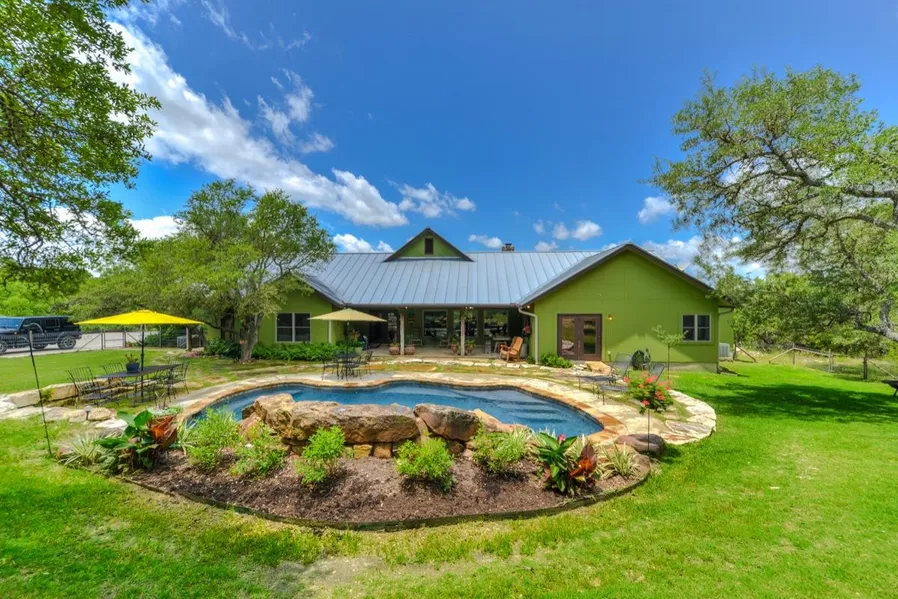 Your family will enjoy the natural beauty and tranquility of Spring Creek Estates, a small rural subdivision offering its owners a simple rural lifestyle with a passion for the outdoors, great views and quality lifestyle. The main house constructed with Lampassas stone and Stucco offers an open living concept with three bedrooms, two and one half bathrooms, rock fireplace, large covered back porch, in ground 13,000-gallon swimming pool/waterfall, gently rolling terrain and a healthy hardwood cover across the 3.4 acre landscape. An added bonus of a 500 s. f. guesthouse with one bedroom, one bathroom, standing seam roof, stucco exterior separated from main house provides multiple uses for the new owner. Additional amenities include a 4,200-gallon...