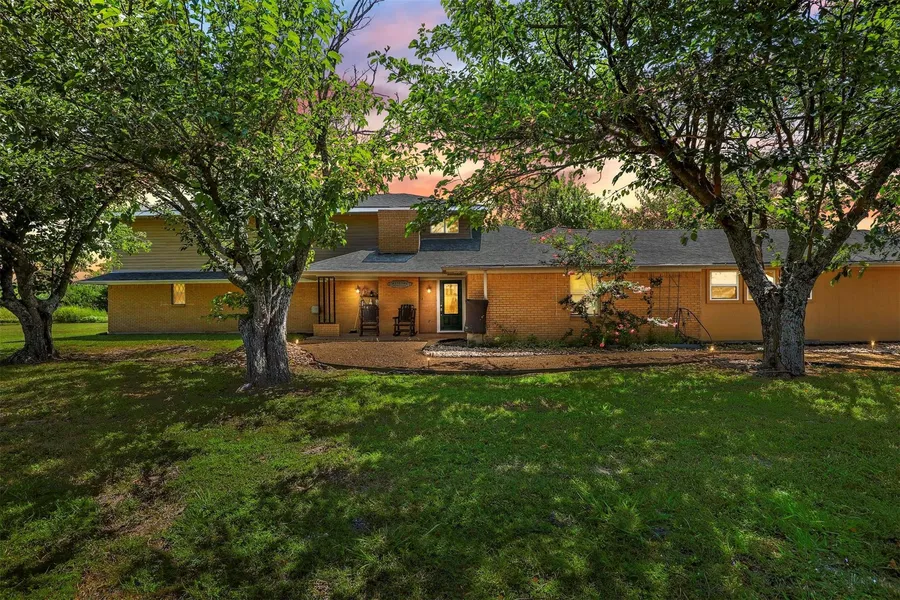 Homesteaders Dream! Home designed for family & entertaining. Plenty of counter space, lazy Susan, three ovens, 6-burner cook top, and two Bosch dishwashers. Farmhouse sink has open view of shaded, fenced backyard. Walk-in, organizer pantry and open-view cabinet for China or kitchen appliances. Office and full bath next to the kitchen. Large media family room. Laundry with room for additional refrigerator freezer. Mud Room with canning shelves, deep sink, and pet wash station. The living room houses wood burning firebox. Two bedrooms access a full bath just down the hall. Two upstairs bedrooms with access to full bath. Upstairs Primary Suite features a large bedroom with sitting area and veranda. Two large ponds provide irrigation for gardening. Primary bath with two sinks and large walk-in closet. Property features a 40X50 workshop, 30X50 barn, raised beds, and 60x80 greenhouse & backup generator. Beautiful rural setting with easy access to the North Texas sites and amenities.