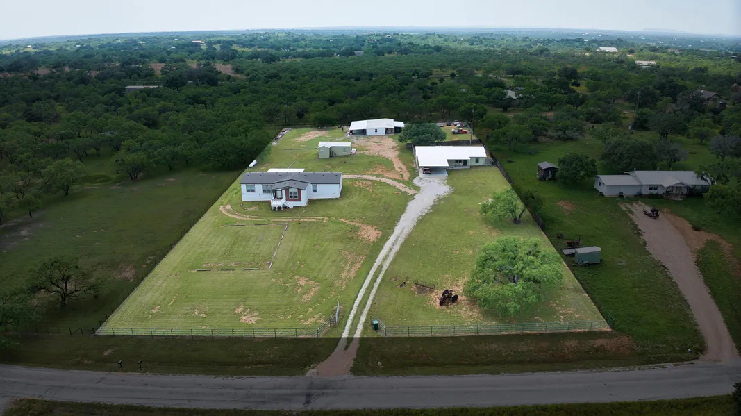 Discover the ultimate in family living with this 2.75-acre ranchette with multiple living spaces situated just outside the city limits in scenic Llano County. Completely fenced to maintain privacy, this property is a family dream featuring three distinct residences and a massive 5,000 sq ft barn, all serviced by community water and CTEC electric.