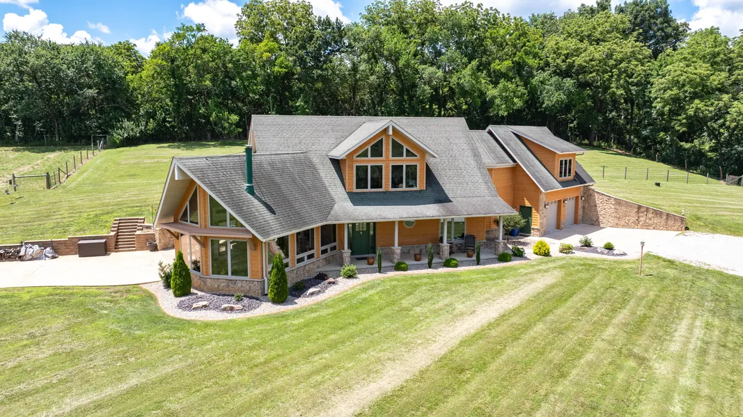 DON'T miss out on this beautiful 3 bed, 5 bath home! Open floor plan w/high cathedral ceilings. Well equipt. kitchen. Primary bedroom w/extra large walk-in shower & double sinks. Vault room w/FEMA rated door has been transformed into a home theater. An office, 2 bedrooms(each with their own 3/4 bath with large walk in showers), & family room adorn the upper level. Improvements throughout incl. upgraded 1,000 gal. propane tank, prof. paint job, & updated landscaping. Insul. concrete form construction. Covered patio. Fenced yard. Low maint. fiber cement siding. All this & a second, 2 bed home located on the property w/restored hardwood, newly stained deck, fresh paint, & new water heater. Upgrades to the 2 metal out buildings include the addn. of a lean-to, heating system, 3/4 ply stalls, plumbing & electrical upgrades, washer & dryer, sink & in wall A/C. Addl. workshop complete w/office, loft storage, 3/4 bath, & vacuum system. NEW fenced pastures. NEW concrete patio.