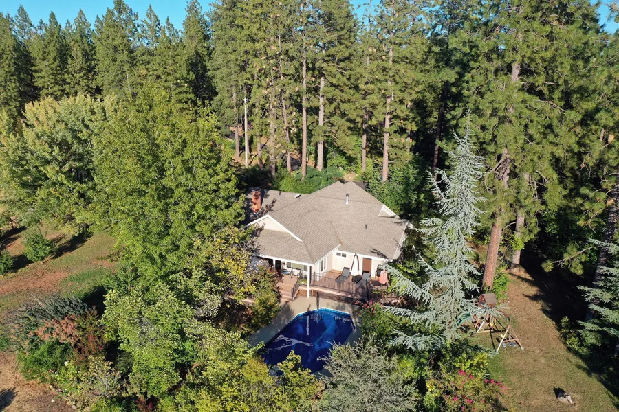 This Placerville estate offers more than a luxurious home; it provides a lifestyle of elegance and tranquility, set against one of California's most picturesque wine regions. Whether you are drawn to the allure of the vineyard, the opulence of the residence and serene beauty of the surrounding landscape, this property promises a living experience that is both extraordinary and deeply satisfying. In a region renowned for its vineyards and natural beauty, this estate stands out as a pinnacle of luxury living, combining the best of both worlds in an idyllic setting. This Placerville vineyard estate is a dream come true for those seeking an unparalleled blend of refinement and pastoral charm, along with privacy. The vineyard, spanning approximately 3.5 acres, is meticulously maintained and produces quality varietals. This active vineyard is a visual delight and a functional aspect of the property, providing a source of personal wine production and a unique touch of authenticity to the estate. Stepping outside, the estate truly shines. The expansive deck area is designed for outdoor living and entertaining, with a swimming pool and panoramic vineyard views. With over 10 acres other options still remain for land use with plenty of room to increase the gardening/Farming to your liking!