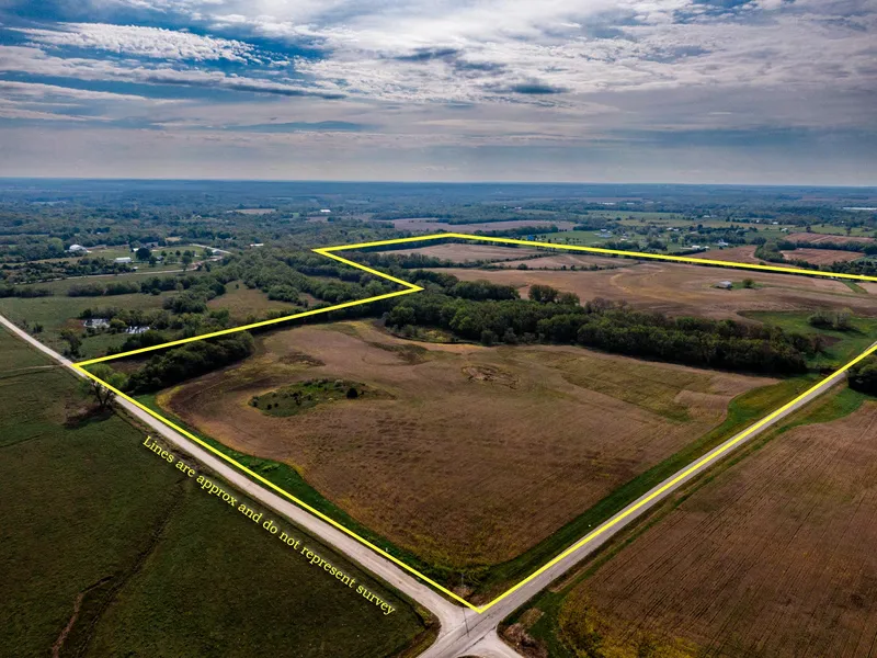 120 Acre M/L row crop farm. 90.1 Acres M/L tillable currently leased and planted to soybeans. Wet weather creek and enough timber to deer hunt. There is a 2,160 sq foot, wood frames, metal sided building on the property. Rural water and electric have been on the property in the past but the meters are not currently in place. This is a nice farm in a desirable location.