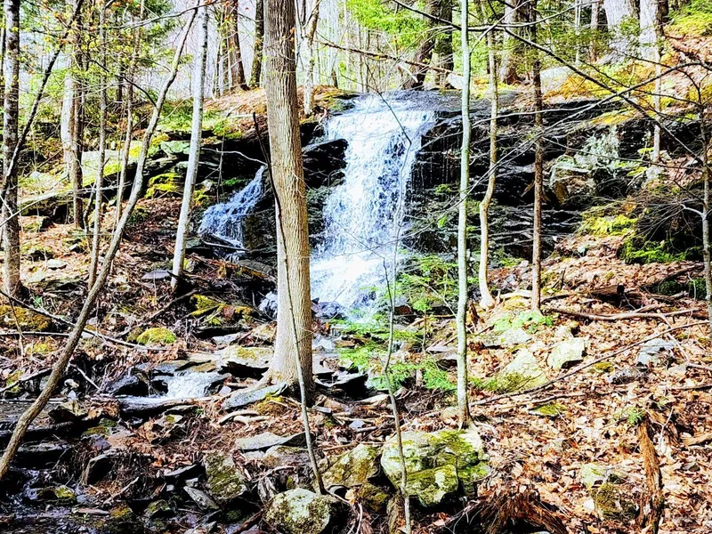 Don't go chasing waterfalls when you can own your own!! This beautiful 25 acre lot has a babbling stream that enters on the Rt. 4 side and gradually cascades down a rock shelf and down to a (approximately) 10 foot tall WATERFALL! When entering the property if you stay to the left and go down the logging road a couple 100 yards you will see a flag on your right, that will bring you to the falls! There has also been work done to the Gibbs Mill Road side, large granite boulders have been used to build up the land with stunning views! There is also another logging road that connects both roadsides of the property. A soil test been done with two suggested septic spots mapped out. The trees have been thinned throughout the 25 acres, you can clearly see it on some of the drone photos. Don't miss out on this great piece of land with PLENTY of options to make it your own slice of Maine! If 25 acres is too much a separate Survey has been done to split the property.