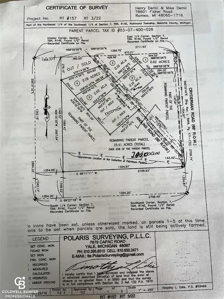 Unique opportunity! This 25.41-acre parcel offers approximately 714 feet of frontage on Angling Road and 1,355 feet on Cryderman Road. A great mix of open and wooded areas—perfect for a horse ranch or hobby farm. Grow your own hay, enjoy privacy, and still be just minutes from Richmond and Armada. Short term land contract terms may be considered. Well and septic will be needed for building. subject to crop rights