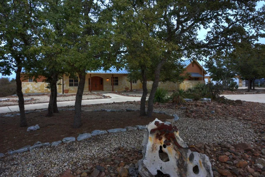 Hill Country native limestone estate perched high on Carefree Trail in prestigious gated ranch community of Twin Springs.3700+/- sq. ft. home includes 4 spacious bedrooms,3 full bathrooms appointed w/travertine tile & granite, great room has wood beam accents & floor to ceiling stone fireplace,& climate controlled wine cellar. Master suite offers a luxurious bath w/ views, corner spa tub,huge his/her closets. Kitchen features granite counters, stainless appliances including gas cooktop, pull out warming tray, wine fridge & two full sized ovens. In-ground pool w/ water fall, covered stone patio & built in grill area with wrap around bar provide a perfect outdoor retreat to maximize the breathtaking long range views. Massive 3 bay ridge row implement barn w/roll-down doors.