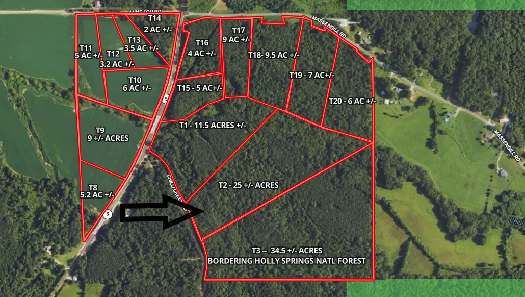 Research Parcel InformationFrom Hickory Flat take Hwy 5S for 5 miles, then turn right on Chili Creek Road, land will short distance on the left, look for sign