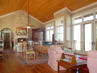 500 feet Pedernales River frontage on 25 manicured, acres. 3458 +/- sqft home w/ metal roof + 3 car garage with high wood ceilings, antique pine floors, French kitchen range, his/her mater baths, double sided fireplace in study/great room, Colorado rock fireplace in huge screened porch, private courtyard with sprinkler system, 1800 bottle hidden wine cellar, Brazillian hard wood exterior decks off master and great room, 4 stall horse barn complete with hay loft, decorative pond.