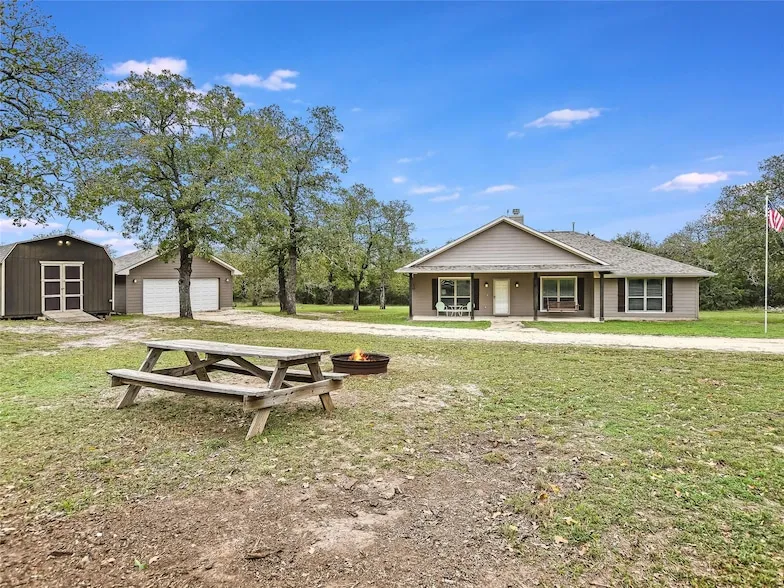Extremely private heavily treed 25-acre Gentleman's ranch close to Austin in the Burnet County town of Bertram featuring a 3-bedroom 2 bathroom move in ready home with an open floor plan and plenty of room for everyone! The large bedrooms have room for multiple beds, and large bathrooms with granite countertops. The kitchen features granite countertops, is open to the large living room & dining room and has a long bar for serving or eating. Some upgrades include: crown molding on the cabinets, ceiling fans, full gutters, vented sofit all the way around and a gas dryer connection. This home also has a 2-car detached garage, huge patio with a large jetted hot tub and a 14 X 24 storage shed. This double gated, agricultural exempt property is fenced and cross fenced with a cattle guard in place. This hunt free property is an entertainers dream with all of the extras to do on the property: relax in the hot tub, ride or take your ATV, golf cart or Polaris throughout the properties many trails, swing on the porch, relax on the front or back patios, enjoy a picnic outside on the picnic table, gaze at the beautiful views and stars at night, enjoy the 420' Zipline with a launch platform and landing platform (complete with harnesses and a line tightening tool), play volleyball or enjoy Disc Golf! The property also has a corral, squeeze chute, two water tanks, feed trough and two hay rings. The privacy offered from the location and the trees on this property are something you must see! Schedule a showing to see this beautiful piece of Heaven today!