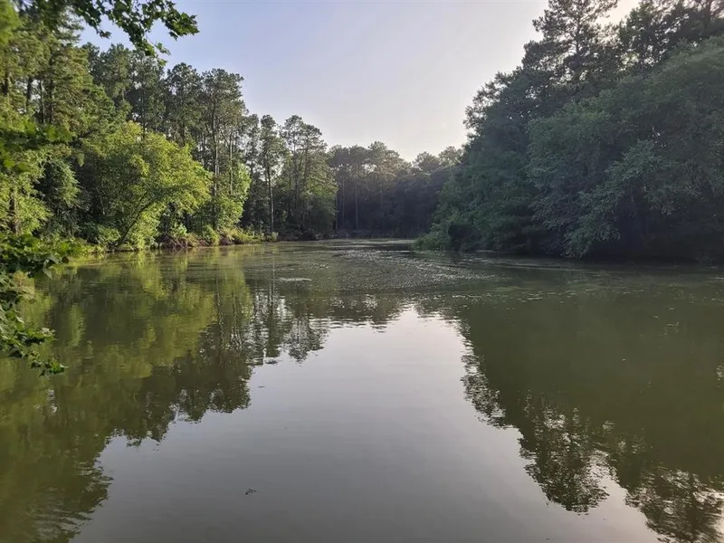 Beautiful 25 acre unrestricted waterfront future dream homesite!! Land can also be used for hay production, livestock or horse farm. Great for hunting deer. This property would be a great investment property for potential RV park or developed into multiple lots. Two water well pumps on the property. The front of the property has a beautiful pond and a horse barn with excellent bones. This property has 360+ feet of river front. Land can be accessed from a hard-paved road in the front and a gravel road on the right side. Located in the Huffman area. Easy access to FM 1485 and 2100. There is a house and 5 acres available for sale Tax ID: 044-141-000-0041 and 044-141-000-0055.