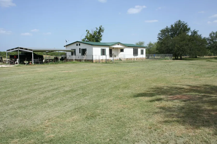 There is a fenced yard around the house that serves as a safe place for children to play and to keep pets. A large covered parking area provides a safe place for vehicles. There are two portable outbuildings. One is a rough wood siding and is set up with a tanning bed and place to relax for the lady of the house. The other is a workshop/storage building. The area around the house is fenced, as is the area around the two outbuildings.