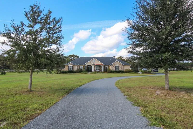 DRIVE THROUGH THE STONE COLUMNS AND DOWN THE TREE LINED DRIVEWAY INTO THE SPACIOUS 3 CAR GARAGE. THIS HOME CAPTURES YOUR EYE FROM THE MINUTE YOU WALK INTO THE COLUMN ENTRANCE WITH A FORMAL DINING ROOM, FRENCH DOORS LEADING INTO THE LARGE OFFICE. THE SPLIT BEDROOM PLAN HOLDS THE MASTER BEDROOM HAS LIGHTED TRAY CEILINGS, HIS/ HERS WALK IN CLOSETS, DUAL VANITIES, WALK IN SHOWER, GARDEN TUB, WITH ACCESS TO THE SCREENED IN PORCH PERFECT FOR ENTERTAINING WITH A SOLAR HEATED POOL W/ GUEST BATH. THE GOURMET CHEF'S KITCHEN BOASTS SS APPLIANCES, LARGE ISLAND, GRANITE COUNTER TOPS AND OPEN FLOOR PLAN OF LIVING AND DINING AREA WITH FLOOR TO CEILING STONE FIREPLACE W/ ACCENT LIGHTING AND BUILT IN BOOKCASES. TWO MORE LARGE BEDROOMS, A LARGE GUEST BATH AND MEDIA ROOM WITH SLIDING GLASS DOORS ONTO THE PATIO. LARGE 4 STALL BARN WITH LOTS OF STORAGE, RV PARKING, ROUND PEN, WASH RACK, TACK ROOM, AND ARENA....