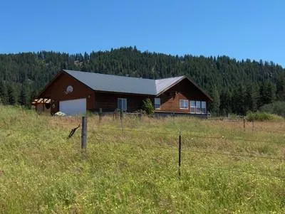 Spectacular mountain and valley views out every window. This charming ranch style cedar home and barn are perched on a knoll in the east foothills of the valley. 3 bedrooms, library/office, 2 baths with an attached garage, master bath has a steam sauna, all bedrooms with air to air exchange, river rock woodstove hearth in the living room, Tamarack wood floors in the entry way, dining room and kitchen. Great horse property with rolling pastures, timber and meadow grounds with a seasonal stream. 48' X 50' Barn has electricity and power with tac room and shop areas. Relax in the wood heated outdoor sauna. Scattered fruit trees throughout the yard and mature landscaping. Grow your own veggies in the Greenhouse. $492,000