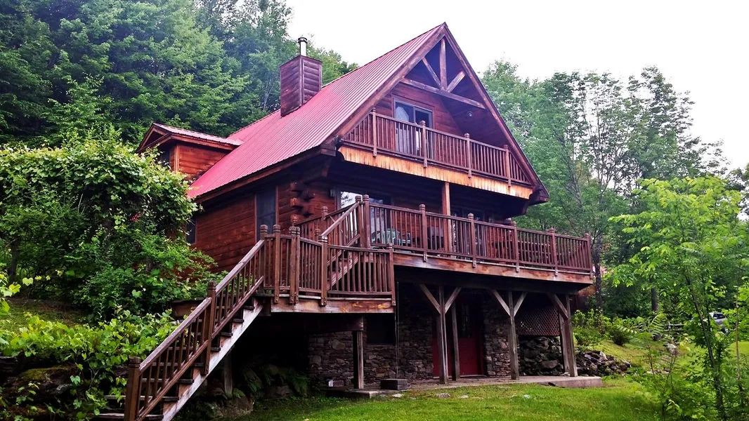 Beautiful log cabin in a serene, private setting high on a hillside with several outbuildings & a cozy guest/caretakers' cottage. Eastern mountain views are enjoyed seasonally & could be enhanced w/ further clearing. A wonderful summer get-away or a cozy winter ski chalet, the option is yours. This well appointed home offers 3 bdrms, 3 full baths, a sleeping loft, living rm w/ woodstove, family room, warm radiant heat, & decks for outdoor enjoyment.