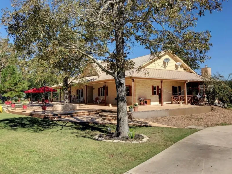 Beautiful Country home on 24.778 acres w/ 2 ponds. Built w/ highly efficient materials to endure the Texas heat & an out door rock fire place, open concept floor plan, porches all around W/a fabulous patio for entertainment & incredible views! This home is ready to go! The home is single story living, but has a second level below for the 2 1/2 car garage & the basement (estimated to be 1447 sqft per seller). Also has a barn and guest house (estimated 900sqft per seller) water well, etc..