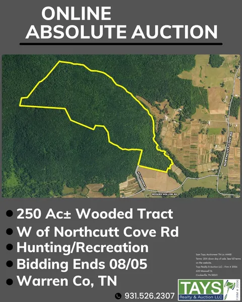Research Parcel InformationFrom the intersection of TN-56 & 70S take TN-56 S toward Northgate Dr. for 1.5 miles. Turn left onto TN-56 S/W Colville St. for 7.3 miles. Turn right onto Northcutt Cove Rd. for 4.1 miles. Turn right onto Rogers Hollow Rd. for 0.6 miles and the property access will be on your right.