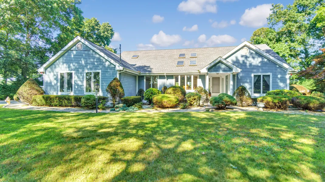 Enjoy WATER VIEWS and beautiful sunsets from this sunny and spacious home. This 5 Bedroom 3.5 Bath home is situated on over one acre of flat land. The grounds are meticulously landscaped and it has the ultimate luxury of a 40' x 20' in ground pool. Even the two car garage has oversized windows with water views. Two zones of Central Air. The living room, with its cathedral ceilings, comes equipped with a wood burning fireplace and two skylights. Plenty of light in this home which comes from the oversized windows and 8 skylights. The full basement has 8.5' ceilings. Aquebouge is the next real estate "hot spot", with its proximity to either the Hamptons or the North Fork you can enjoy the wineries, restaurants, farm stands, beaches and boating all minutes away from this home. Shopping in the Riverhead Outlets is less than 10 minutes away by car. The feeling of being on vacation in your ow...