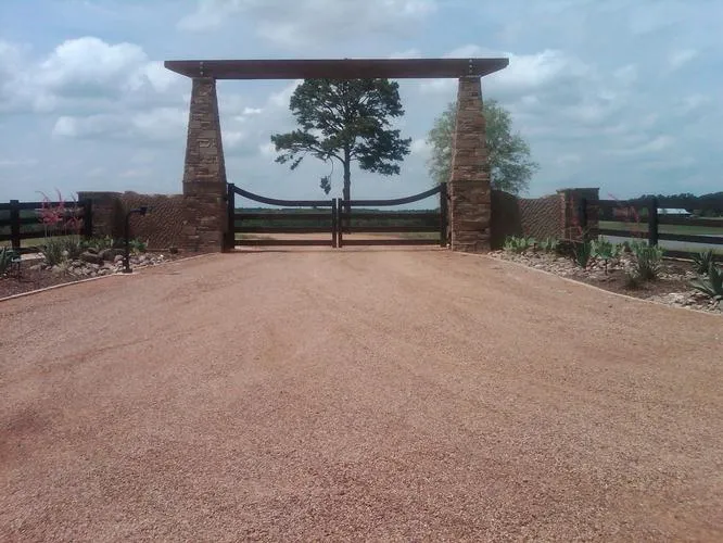 This new lake put in 2010 with a 2 slip boathouse. Views for miles. Stone automatic gate completely landscaped and black plank board fencing for miles. PARTY BARN TO DIE FOR! Huge ceilings with Bar and kitchen and all granite. 2 Bdrms and 1 bath in Party Barn with covered patio all overlooking this gorgeous lake and the hills of East Texas. Private New Guest cottage that looks like it came out of Southern Living! Full kitchen and bath, Stone WBFP with a porch that overlooks lake. Additional Equpment barn that can hold all you want.