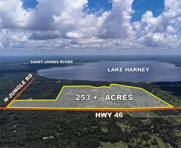 An addition, the neighboring 98 acres could also be purchased (owned by separate ownership). With a purchase of this nature, one would obtain direct access and frontage on Lake Harney. This additional acreage includes a fully remodeled single family lake home on site, allowing for lodging opportunities and additional acreage to assemble a larger tract totaling 351 acres.