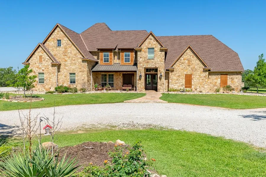 Located 6.5 miles north of Mineral Wells and east of US 281 on paved county road. Mostly gently rolling to level terrain with scattered post oak, elm, live oak, & mesquite. Excellent improved grasses. Timbered game cover with trails. A 5,279+/- SF 6-5-3 sandstone two story home proudly centerpieces the property with outstanding views, great privacy, and serenity. The home is exquisite in detail and custom features, and recently remodeled. New pool and hot tub and deck. Three water wells, three ponds (one is an 8+ acre stocked small lake) and a dry creek with a concrete crossing. Deer and turkey. $5,395,000.00.