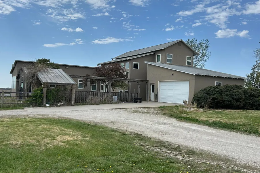 Sitting at the end of a nearly half mile driveway is this unique, 2985 square foot, 3 bedroom, 2 bath, 1 story home on 100 acres, more or less, in Anderson County, KS. Youll find an open floor plan which includes a huge master suite wing that is connected to the main body of the home by way of a large office which could be used a library, home school room or family room. Off that suite is your own private sunroom in which you will enjoy picturesque views of the countryside and neighboring lake. The main body of the home is wide open with the kitchen, dining and family rooms designed for easy communication and entertaining! The upstairs includes two large bedrooms with a large bathroom. Youll love the hard wood floors throughout and everywhere you look there are windows, lots of windows. Natural light flows in abundance. The home sits on a full unfinished basement ready for your finishing touches or storage. Outside, youll find that 80 acres of the full 100 is good, productive tillable land with income potential. The balance of the land is hay meadows. There is a nice 60 x 60 metal horse barn and a nice 30 x 40 metal detached garage/shop! The map is for general reference only and may not reflect exact locations or dimensions.