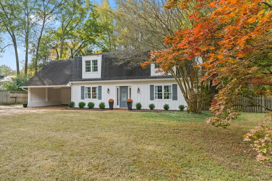** NEW PRICE** Beautifully remodeled Collierville home on a large lot with a picturesque European-style backyard featuring a vintage brick patio and 14x12 yard barn. Light and bright new kitchen with quartz countertops, custom cabinetry, Bosch dishwasher, and bottom-freezer refrigerator. Stylishly updated baths, hardwood floors, and newer windows throughout. The inviting primary suite includes a charming A-frame office, studio, or yoga space. Enjoy the character of the French-style mansard roof, friendly neighbors, and a fabulous location off Peterson Lake Rd—just a short distance to the charming Collierville Town Square. Additional upgrades include all-new plumbing, new carpet, lighting fixtures, and elevated landscaping and patio.