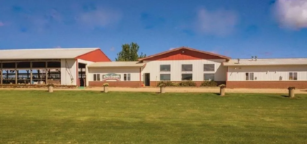 Milking center is 37 x 128 12 and includes the holding area, and a double 17 parallel milking parlor with ceramic tile wall. An addition 18 x 32 houses the milk room and utility room. A second addition 18 x 28 has office, break room, shower and rest rooms. The Milking Center is insulated and heated, except for the holding area which has curtain sidewalls.