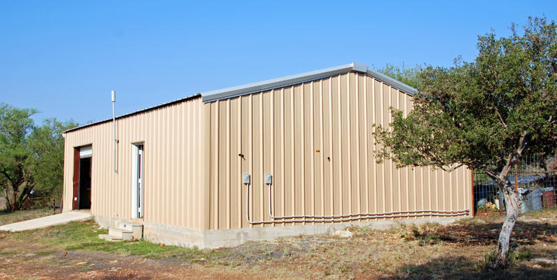 The second is a 30' by 40' production building including concrete slab, composting toilet, plumbing, commercial stainless steel sinks and tables. This building also includes a shed behind it that is 25 feet by 12 feet.