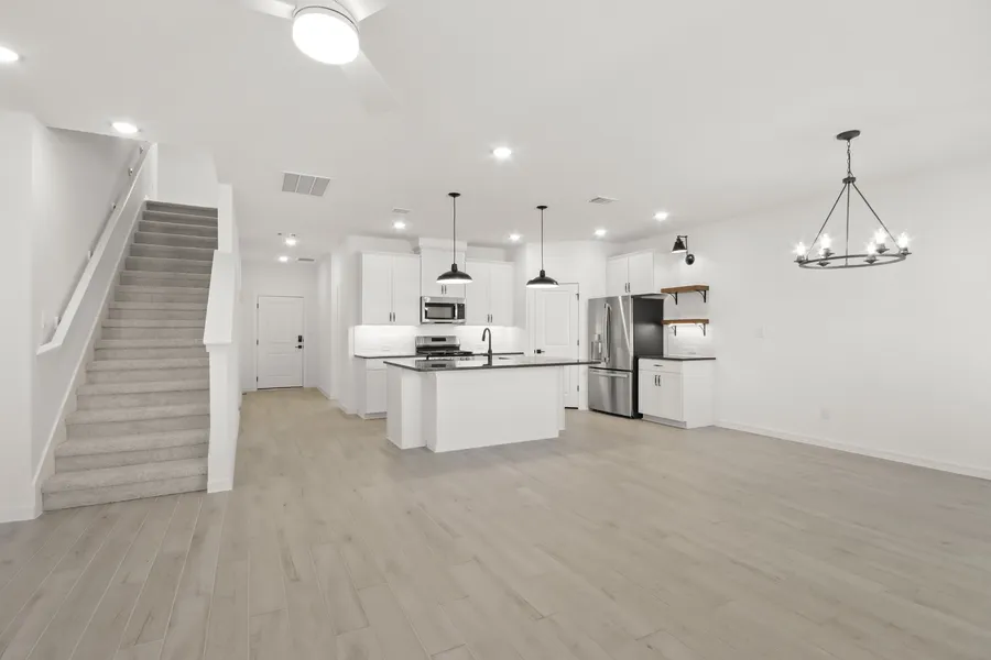 ay goodbye to ordinary and hello to the stylish Sweet Pea home at Aspire at The Hills of Town Creek. This 4-bedroom residence features professionally curated designer finishes throughout. The kitchen is a showstopper with 42" cabinetry (including hardware and pots/pan shelving), soft-close drawers, chic quartz countertops, floating shelves, pendant lights, and modern matte black fixtures. This home offers flexibility with two bedrooms conveniently located on the first floor and a large loft upstairs. The private primary suite provides a serene retreat, complete with an expansive walk-in closet and a luxurious bath featuring dual sinks and a walk-in shower. An inviting covered patio is perfect for outdoor enjoyment. Great Value with low taxes. Located in historic Montgomery with small-town charm, and close to Lake Conroe. Zoned to Montgomery ISD. Tour it now before someone else falls in l...