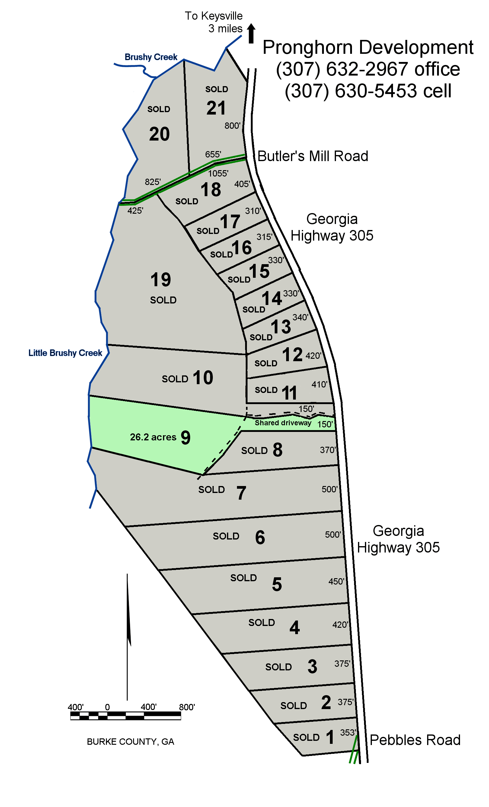 The property is on the west side of GA HWY 305 just .075 miles of Brushy Creek.