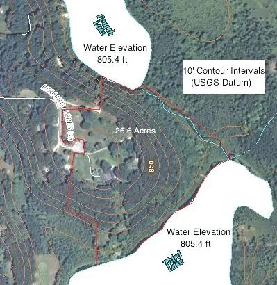 A UNIQUE OPPORTUNITY to own a 26-acre estate on a prominent knoll with 295' of frontage on Fourth Lake, 1500' of frontage on Third Lake, and 990' of frontage on the creek connecting the lakes. Atop the knoll is a 5676 sq ft colonial manor house modeled after the historic George Wythe House in Williamsburg, Virginia. The architect-designed house is spacious, well appointed with many amenities, and is designed to comfortably entertain large or small groups in formal or informal settings. Adjoining the house an aesthetically-pleasing, two-level Activity Barn has hobby and craft workshops in the lower level and a large venue entertainment space on the upper level. Along the shore of Third Lake, in a picturesque setting, is a two-story Honeymoon Cottage with kitchen, rustic living room with fireplace, and screened-in porch on the main level; and an upstairs bedroom exuding a cozy cottage elegance. Mature woods, with no underbrush, covers the hillsides of the property.