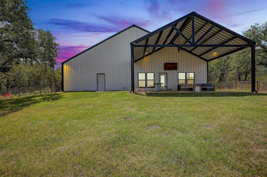 Embrace the epitome of this weekend ranch getaway w this remarkable property featuring 2 entrances, bordered by road frontages on 2 sides. Central to the property's allure is a beautifully finished barndo, nestled in perfect privacy & surrounded by nature. Major improvements include electric on site, septic, & water well! The barndo boast granite counters, upscale vinyl plank flooring, 2 beds & 3 baths, a flex room down, a game room & office up. An attached 28x37 garage w a bath & enough room for a tractor & ATVS, & a bolted 4 by 6 storm shelter.An irrigation system, controllable via smartphone, maintains the sod. High-speed fiber internet makes working remote effortless. Enjoy the pond & abundant wildlife. A new entrance gate w metal piping amplify security & aesthetics. Traverse the property seamlessly using the trails. This ranch offers an amazing opportunity to embrace the tranquil b...