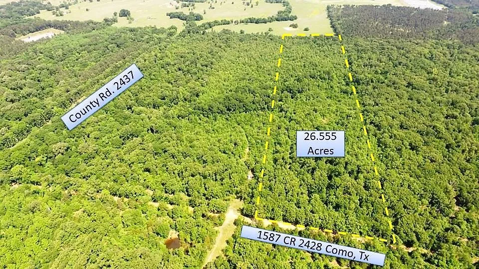 Research Parcel InformationTo easily find the property, put 1589 County Road 2428 Como, TX in your GPS, then go two-tenths of a mile past that.