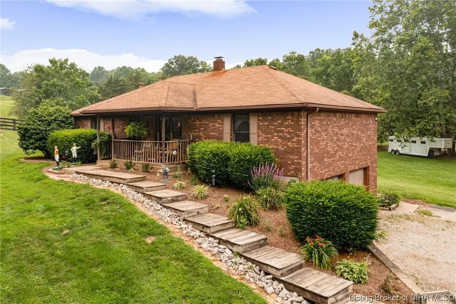 Shown by appointment only - so call today and let us give you a tour! Unbelievable piece of property that is all set up for you and your animals. Currently a working horse farm, absolutely private, not a sound, not a peep, not a person in sight. There are 6 fenced Paddocks/pastures, Large run-ins in every Paddock water available in each paddock. 2 - 30 x 60 barns, barn one has 4 oversized stalls, 1/2 concrete floor & 200 amp electric service. Barn two has open feeding trough, electric and Tack Room area. One pasture has newly planted horse grass. Lots of board fencing and some woven wire fence. A total of 26.88 acres: 16.73 acres in Floyd County and 10.15 acres in Clark County. Clark county lot has frontage on Pekin road and could be split off if desired. There are two homes on the property. The main home has 5 bedrooms 2 full & 1/2 bath home built in 1988 is all brick with a finished ba...