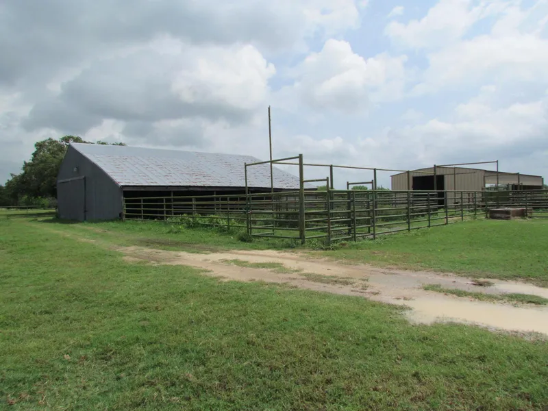 This one won't last long. A horse lover's dream! This 25.91 acre tract of land has just about everything you need for you and your horses. It is well equipped with a round cutting horse arena, 175'x225' roping arena, a horse walker, two large barns consisting of ten horse stalls with self watering systems, turn out paddocks with steel pipe fencing, a tack room & feed room on a concrete slab and a 60'x100' pole barn for equipment & trailers. The pasture is cross fenced into five sections of lush green coastal grass.