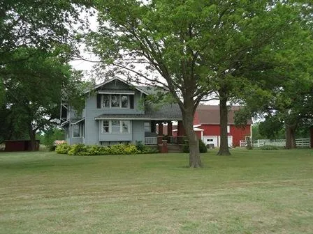 This large Craftsman style home sits on approximately 26 acres just west of Cherryvale, KS, adjacent to highway 169. The home has been recently remodeled, including professionally refinished original hardwood floors throughout, installation of new light fixtures and ceiling fans, new paint throughout, new fixtures in both bathrooms, new dishwasher and range hood, new tile backsplash in kitchen, etc. Historic fixtures in the home include original pocket doors, woodwork, art deco tile in old entryway, and a unique set of French doors. Rooms downstairs include a living room, dining room, kitchen, two bedrooms, one full bath, laundry room, and a large rustic den. The den contains a wood-burning fireplace, with gas fireplaces in the rest of the house. With updates, an existing gas well on the property could be made operational to heat the home without charge. Upstairs rooms include an enormous recreation room with two very large walk-in closets, a half-bath, and a master bedroom. The property also includes two large barns with haylofts, one smaller barn, two other outbuildings, and a carport. Both larger barns have new roofs, and the roof on the house is recent. The yard is well-shaded by several large trees, including one pecan tree. The property has two pastures well-suited for horses or a small number of cattle, and also includes around 10 acres of farm ground suitable for wheat, corn, milo, etc. This farm ground is currently crop leased and is bringing in enough income to cover property taxes. With repairs, the existing oil well could also produce additional income. Selling as is. This is a beautiful property!