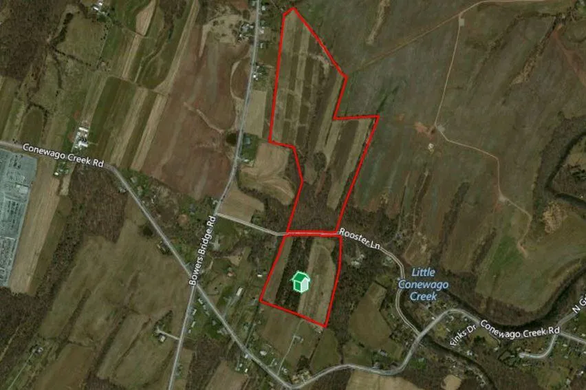 Research Parcel InformationRt. 83 to Strinestown/Susquehanna Trail exit. Go East/ North on Susquehanna Trail to Right on Conewago Creek Road to Left on Bowers Bridge Rd to Right onto Rooster Lane.