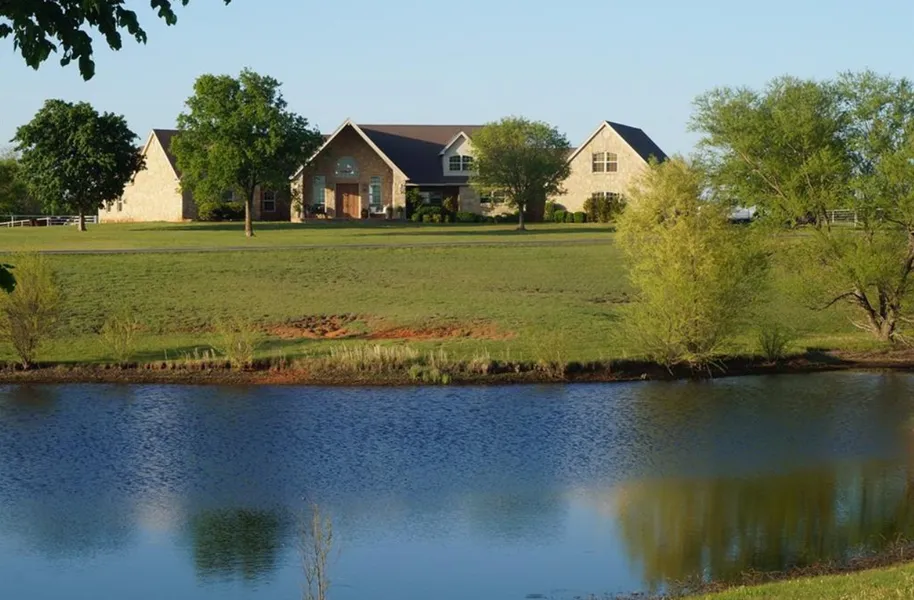 This ranch is a turn-key working horse/cattle operation designed for a serious rancher. It offers a 120'x 225' indoor arena, 150' x 225' outdoor arena, hay barn, 50' x 70' tool shed, 2-6 horse walkers, dog pens, a loafing shed with 5 runs, 3 turn out pastures with loafing sheds, 3 pipe pastures and 4 hook ups for trailers. The 21 stall horse barn with tack room, wash rack, restroom, fly spray system, auto watering, concrete shed-rows and 18' x 16' office is adjacent to the arena. The magnificent home sits on 370 sprawling acres and is encased by white pipe fences with a gated entrance. The square footage includes the two small apartments. This home would need to be professionally measures but the estimated footage is 4800-5000 square foot. It has 4 bedrooms, three and a half baths, office, library, Lg. pantry, 2 fireplaces, a gourmet kitchen and large covered porches. Don't miss out on t...