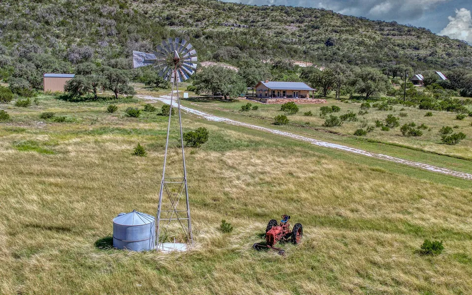 Are you searching for some hill country acreage with a home? You won't want to look any further after seeing this charmer! The 51.15 acres is located off of scenic Hwy. 337W just a few short miles from Leakey and is a mixture of flat pasture land, strong, seasonal creek with active springs, and towering hillside with amazing views. The 2BR/2B plus loft, home is well built with a large covered front porch off the living and master, perfect for taking in views to the south and east. There is also a large covered back porch off the kitchen, equipped with a hot tub. The design is open concept and you will not be disappointed the moment you step through the door. The home comes beautifully furnished and decorated with lots of wood touches, a great fireplace and a master bathroom with a walk- in shower and an Amish wooden tub. Lots of fun touches throughout the home with lighting and fixtu...