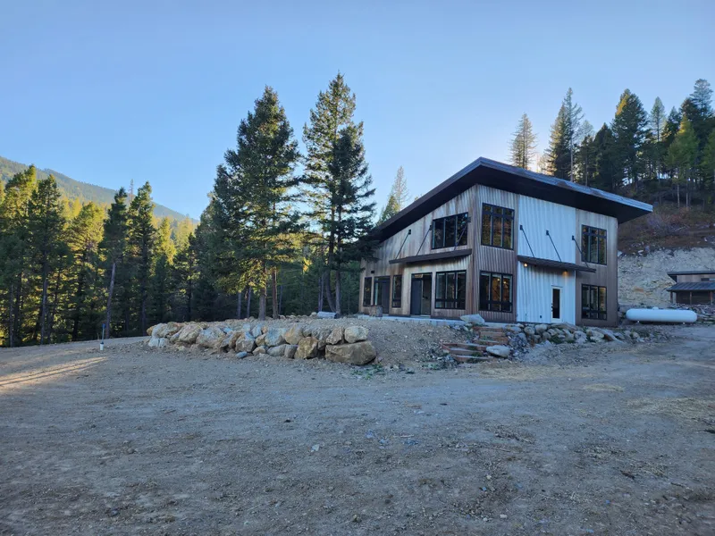 Self-sufficient living at its best. This home is located behind a locked gate in the Anna's Acres Development and sits on 49 +/- acres with 67+/- additional acres that borders 25,000 +/- contiguous acres of state land. This unique home hosts one bedroom and two bathrooms. There is a loft that could easily be converted into a second master suite. Beautiful wood accents throughout including a barnwood wall, built in wood table, slab wood shelves. The reclaimed lumber used for stairs, flooring and joists came from The Missoula Mercantile. HUGE windows are perfectly situated to capture sunrises, views, and nature. The cathedral ceiling provided more space for additional windows allowing in as much sunlight and view as possible. In the kitchen the sleek design of cabinetry and