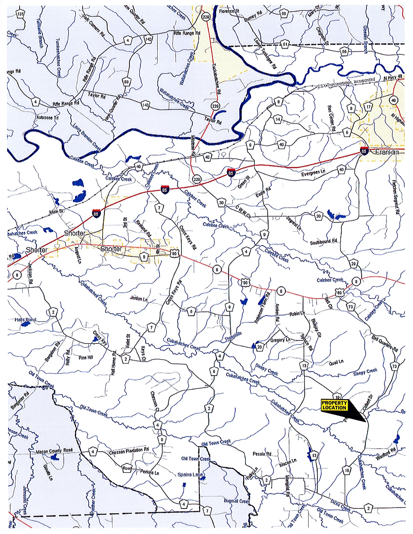This outstanding hunting tract is located only 30 minutes east of Montgomery and 30 minutes west of Auburn. There are several mature hardwood bottoms with a variety of mature acorn-bearing oaks surrounded by mixed pine and hardwood stands of mature timber. Beaverdam Creek runs through the middle of the property. There are several large (2+ acres) wildlife fields, all with nice shooting houses, that are ideal for year round planting. One area of about 15 acres is thick, natural regeneration young pine and hardwoods which was intentionally left for a bedding area for deer. There are three small ponds on the property, one of which would make an ideal duck hole. This truly diverse property has a little bit of everything which is rare for a piece of property this size. The property is in the heart of big buck country with excellent deer hunting and great turkey hunting as well. With a mile of road frontage, this property could easily be divided into 2 or 3 parcels.