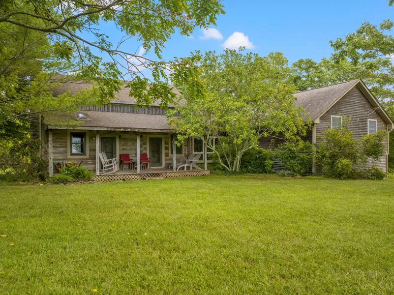 Visitors appreciate the warm faade, constructed of log, clapboard, and stone, each appealingly weathered by the Bluegrass climate. The 20th century structure thoughtfully incorporates a 19th century cabin no doubt built by early Woodford County settlers. From the hand-hewn logs to the stone hearth, historic details are seamlessly unified with modern features. Sunny and well-sized living spaces boast charming, beamed ceilings. Wood Dutch doors with forged iron hardware and French doors allow light & fresh air. The inviting deck, porches & patio extend space for relaxing and entertaining, with lush views in every direction.