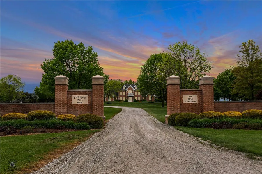 Picturesque riverfront living on this sprawling 28 acre "Kentucky Inspired" Equestrian Estate. Luxurious country setting only 1 hour south of Chicago. Impeccable craftsmanship throughout in this 4230 sq ft all brick home featuring 5 bedrooms, 5 baths, 1st floor office and a 3 car garage. The main level owner's suite boasts a private sitting area and courtyard, plus his/her closets, walk-in shower, whirlpool tub and double vanity. The exquisite woodwork throughout the home was custom designed to add richness and beauty. The foyer features soaring 22 ft. ceilings with a grand staircase that exudes timeless elegance. Volume ceilings throughout the entire home. Chef's kitchen was designed with entertaining in mind with a large granite center island, butler's pantry, Thermador cooktop, subzero refrigerator, wine fridge and handcrafted Amish cabinetry. Every window overlooks the professionally...