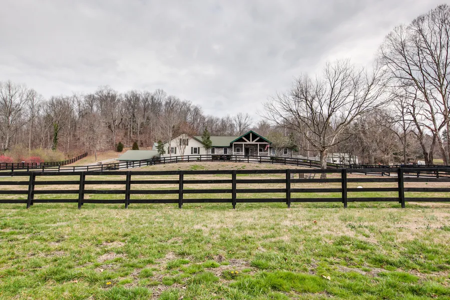 27 acres just south of Leiper's Fork in desirable Williamson County TN. The home features an open floorplan perfect for big groups. There's a huge deck that overlooks an orchard, a party room w wet bar, and theater. A finished basement has flex space including huge storage, deep garage, a fitness room, and spacious laundry room. The entire property has solar/wind offgrid option at the flip of a switch kiss the electric grid goodbye! 36x100 metal shop has concrete floors and a drive in door. A perfect 6 stall barn has it all! Wash rack, tack room, feed room, and big storage space, it connects to paddocks and trails guide you through a hardwood forest to a commanding ridge which has a nice building site. At the back of the property a year round creek cascades over waterfalls. Property has it's own spring.