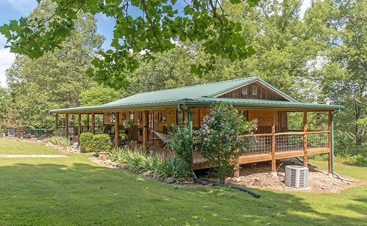 Located in the coveted Peter Cave Hollow Estates on Bull Shoals Lake, Beautiful 3 Bedroom, 2.5 Bath Ranch on 27.74 Acres - Cherry Hardwood and Ceramic Tile Flooring - Tiled Showers - Open Floor Plan with Kitchen Bar overlooking living area - Full Finished Walk-out Basement with cozy Quadra-Fire Wood Stove - Secluded Location adjoining the Corp Line - Relax in the hammock or rocking chair on the almost full wrap around covered deck - Commercial Grade Metal Roof - 5,000 Sq Ft Shop with Drive Through Doors, Concrete, Electric & Water - Lush Pasture for your horses or livestock - Woods brimming with Deer and Turkey - Fenced & Cross Fenced - Pond - 25x30 Pole Barn Shelter - Lake View from Field - Corp Approved 10x20 Boat Slip and 10x20 Swim Dock with Solar Power - Additional Land Avail.