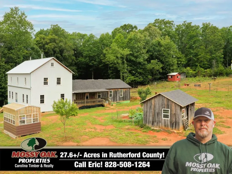 Multi-use property. Great Ellenbor location that's about an hour from Charlotte, Hickory, Asheville and Greenville SC. 27 +/- acres has been used as a residence and farm. Multiple structures that include 2872 main home, 1440sqft second home, a 30x48 metal barn and several purposeful outbuildings. Both homes need finishing as they don't have electricity or conventional plumbing and drywall needs to be completed. Electricity is readily available and water is currently supplied from a well ran by a generator. Property is highlilghted by a 6.5+/- acre fenced in pasture with pond, several garden spaces, and short range mountain views. This self-sufficient land would be great for updating or leave it be as a less complex way of living!