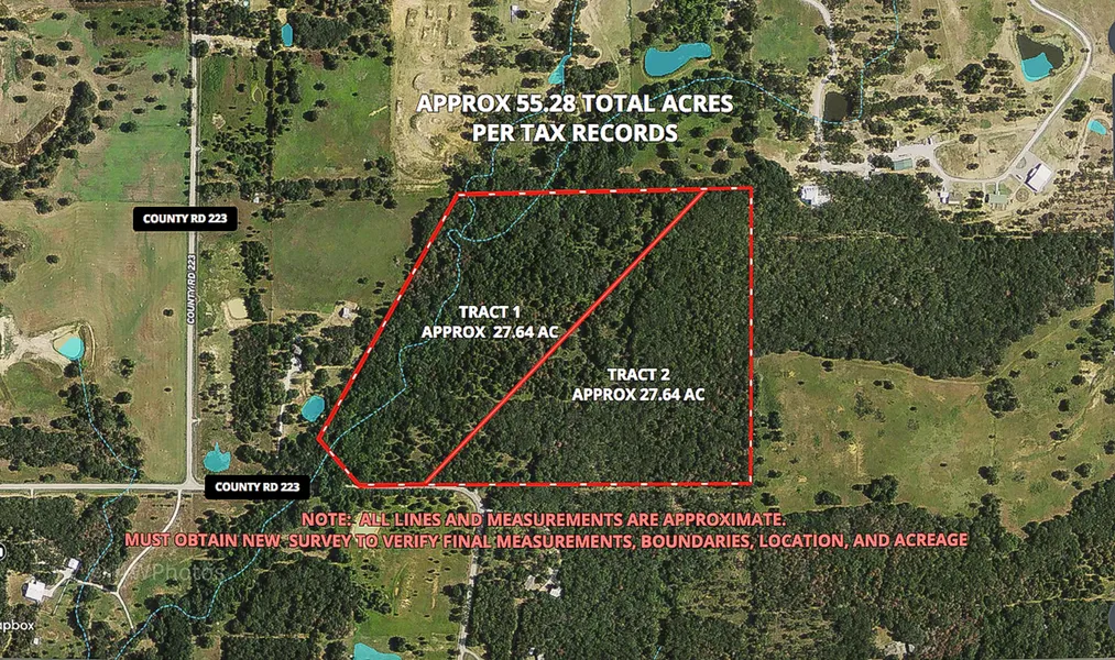 **Update July 2018:: Make your choice of either of these 27 Acre Wooded Tracts offered out of a larger 55 Acre Tract** Experience the secluded feel of the northern Hill Country area of Texas! Electric and Woodbine Water Coop are in CR 223 frontage. Feel like you are in Colorado just 1 hr north of the Metroplex!! This ranch and recreational property is just 2 miles from Lake Kiowa w asphalt road frontage, and nearly 100% timbered w sloped terrain. A seasonal creek runs through the property. CR 223 has numerous ranches and estate properties, as this is a highly desirable area with ever increasing values **Must see as pictures do not do this property justice**Will require survey to divide prior to closing.