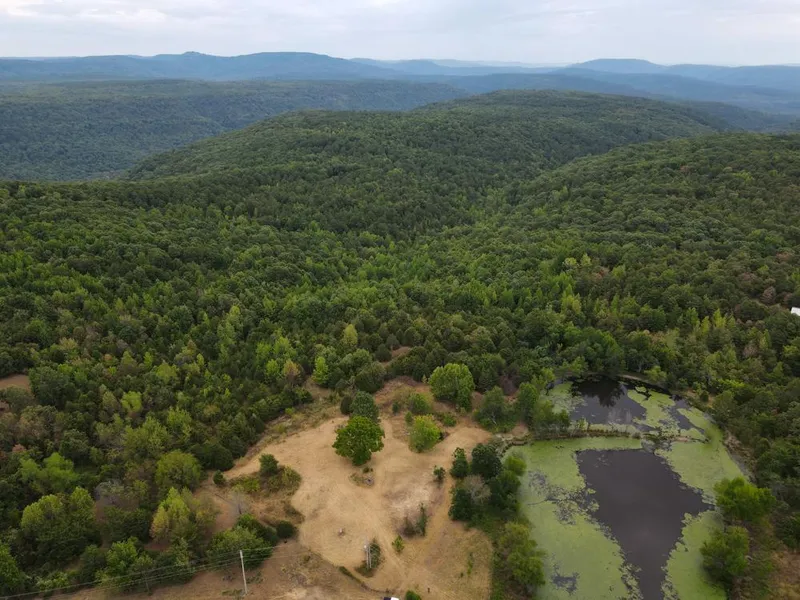 This 27 +/- acre property is truly one of a kind. Consisting mostly of thick timber, it features approximately 3 acres up front that are cleared, next to a 2 acre pond. There is electricity and water on the property and fiber internet available at the road, which is paved. Multiple wet weather streams run through the property, creating an ideal habitat for all matter of wildlife. The property is bordered by the Ozark National Forest on the north and east sides providing access to more than 100,000 acres of forest reserve.