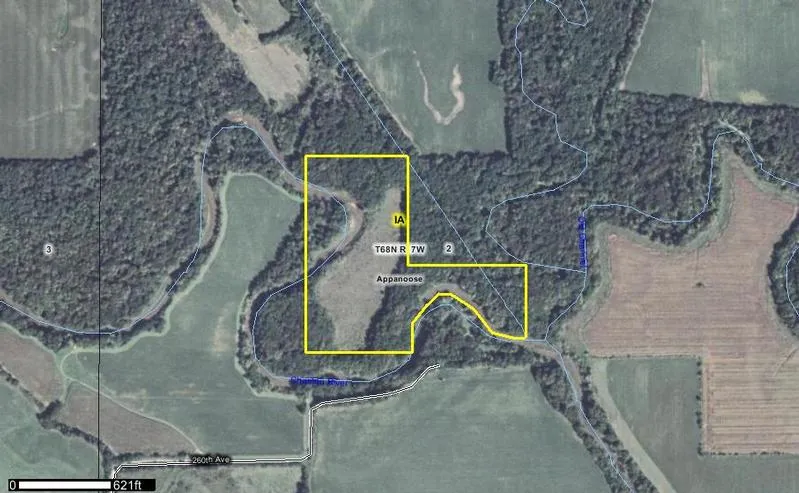 27 acres m/l of hunting on the Chariton River. WOW! A nice small secluded farm that has the Chariton River flowing through it. You could look a long time before finding a farm like this one. Access would be through the neighbor to get to this piece of wooly deer haven. If you know about hunting in Southern Iowa then you already know about the giant bucks that cruise the Chariton River. There is tillable ground all around the farm. I will let the aerial speak for itself. This isn't a place to build your home, but is a n awesome place to come hunt. Old cabin sits on the river, isn't in good shape, but might be able to be used as shelter. Old well on the farm that the owner's father drilled years agot to get water for the small cabin. This farm has been in the family for YEARS. New buyer might want to take advantage of some government programs to help pay for this farm. (Buyer would want to explore these options with the local NRCS office)
