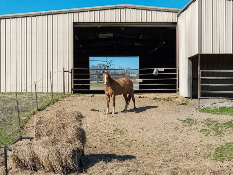 A horse lover s dream! This stunning barndominium sits on 27 picturesque acres, offering the perfect blend of rustic charm and modern comfort. The barndominium includes a large living room, spacious kitchen, oversized bedroom, and a shower/tub combo bath with a laundry room. The heated horse barn ensures year-round care for your horses, while pastures and scenic riding opportunities create an equestrian paradise. Whether you're training, trail riding, or simply enjoying the beauty of country living, this property is the ultimate retreat for horse enthusiastsCould be used as Veterinarian Clinic. Natural gas and City water. Property may be subdivided or split. Owner finance possible with acceptable down payment for qualified buyer. Farm Credit lending available with terms: 20% down,20 year term, Credit score over 640 6.45% (todays rate 7/1/2025 Subject to change) 1% origination fee. Military personnel, Firefighters, and EMTs get 1/4% off current rate plus no origination fee. Barndominium sold furnished.